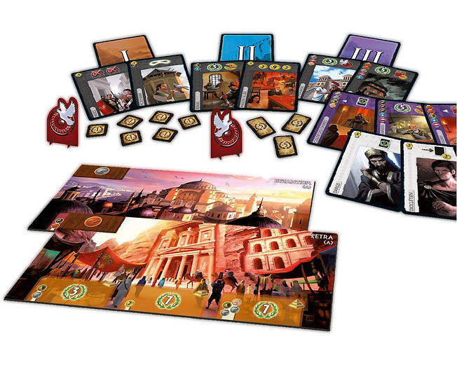 Chaque joueur reçoit une des 7 merveilles du monde à construire. Pour cela, il devra s’aider de pouvoirs de différents bâtiments qu’il construira au fur et à mesures des 3 Ages de la partie. Il devra également se protéger des attaques des Cités voisines en montant ses propres armées. Le commerce avec ses voisins sera également essentiel pour obtenir les matières premières nécessaires à la construction des bâtiments de sa Cité.